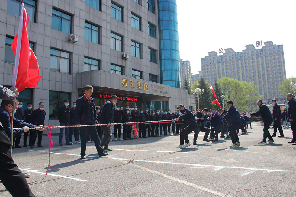 2022年5月13日,喜丰集团工会组织员工在公司总部举行“抗疫情、保生产”职工趣味运动会。一车间、浩阳、富阳、行政等代表队进行了拔河、50米吊瓶跑、寻宝等项目的比赛。本次活动丰富了员工文体生活,增进了团结友谊,提高了凝聚力,使广大干部职工以更加饱满的热情投入到抗疫情、保生产工作中来。